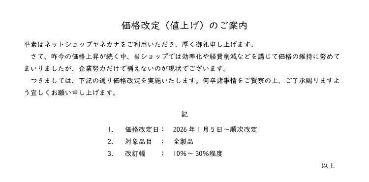 平素はヤネカナをご利用いただきありがとうございます。